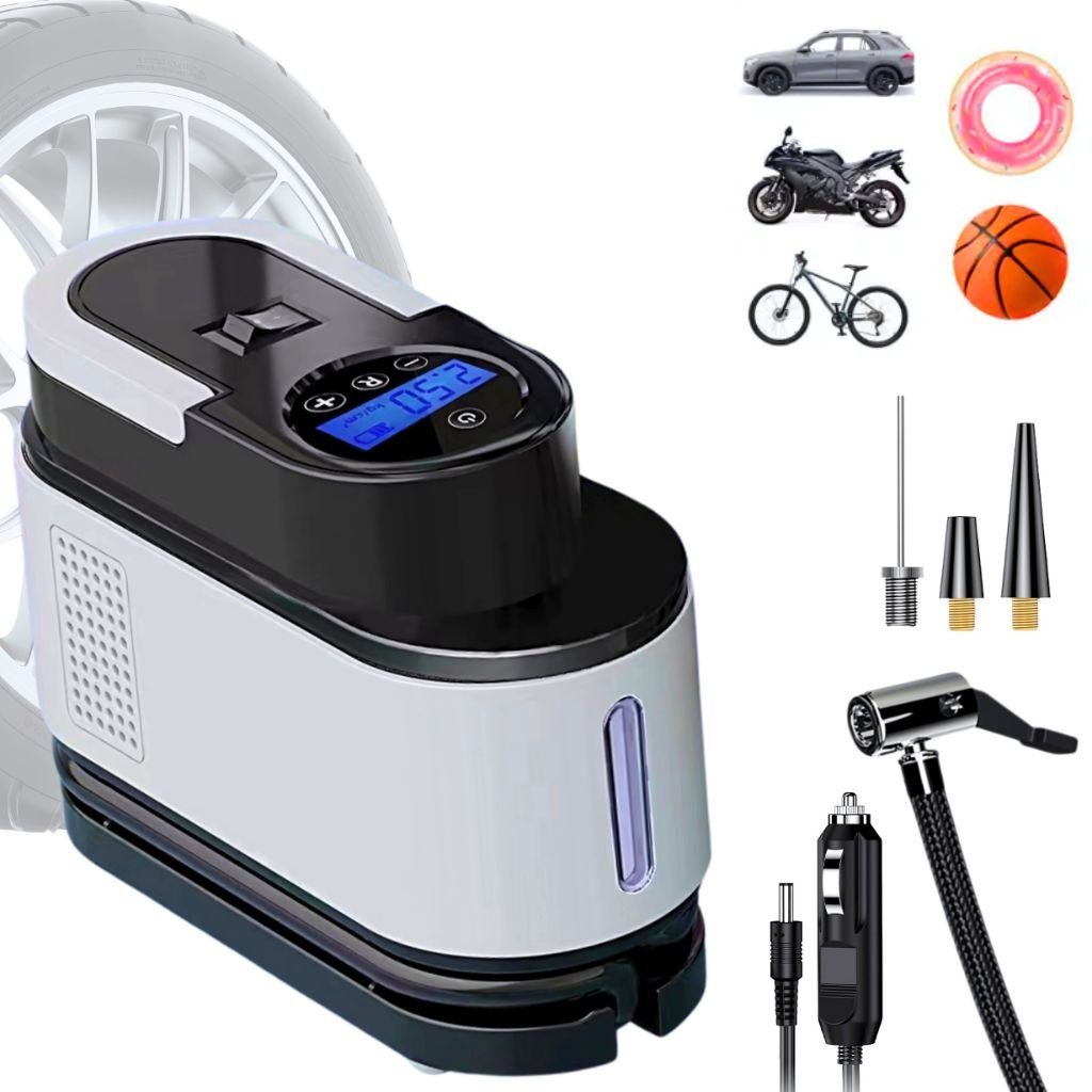 - Double Cylindre Haute Performance : Assure un gonflage rapide et puissant, idéal pour les pneus de voiture, moto, SUV et plus encore.