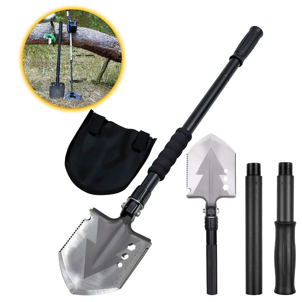 - La pelle tout-terrain sous un design segmenté vous permet d'ajuster la longueur en ajoutant ou en soustrayant des rallonges de 36,8 cm à 71,9 cm, pour répondre à vos besoins spécifiques sur le terrain. Elle peut même contenir plus d'articles de survie dans les segments à l'intérieur de la poignée. Elle est également livrée avec un sac de transport avec boucle de ceinture et loquet Velcro qui peut garder toutes les pièces soigneusement rangées car elles se décomposent un petit transport / rangement Taille