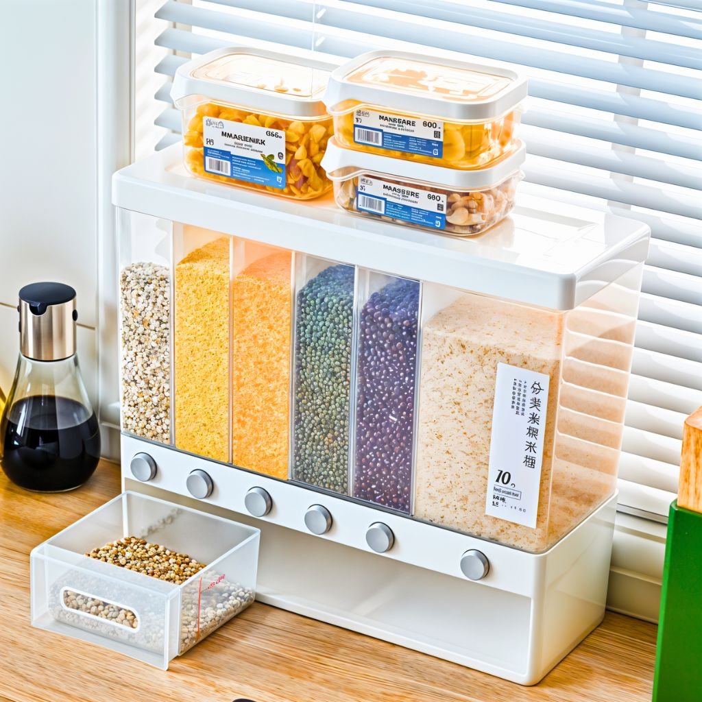 - 1. Rendez votre cuisine propre et rangée avec le distributeur de nourriture sèche mural!