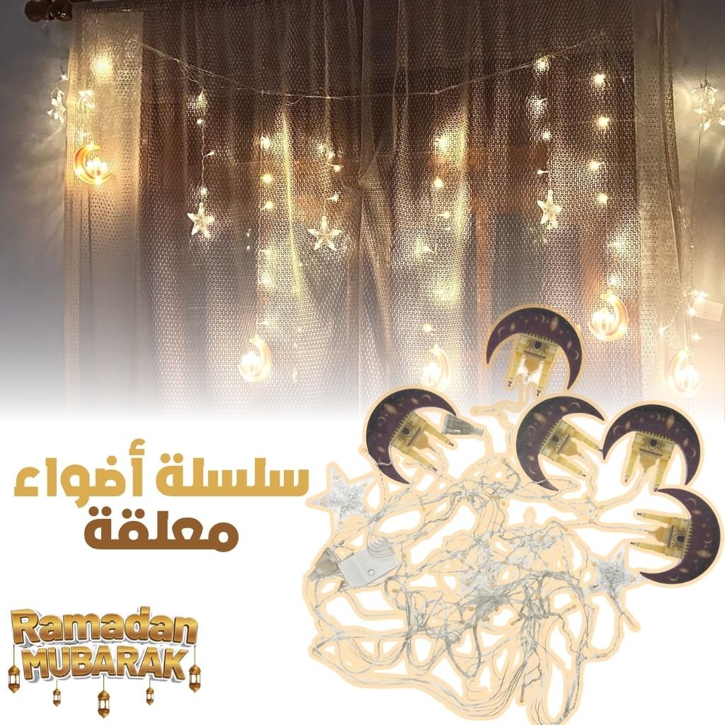 - Utilisation Polyvalente – استخدام متعدد : Adaptée à une utilisation en intérieur comme en extérieur, cette guirlande est parfaite pour décorer votre maison, votre jardin ou tout autre espace lors des célébrations du Ramadan.