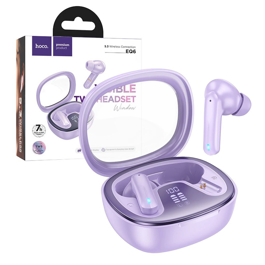 Écouteurs sans fil Bluetooth 5.3 HOCO EQ6 Purple – سماعات لاسلكية أصلية