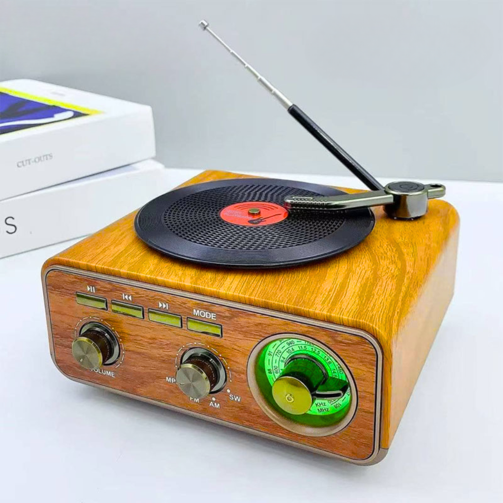 - Portable et facile à utiliserCaractéristiques : • Design rétro • Petit, léger et facile à transporter • Haut-parleurs stéréo • MP3, FM, AM et SW (réception mondiale) • Bluetooth • Son stéréo • Lecture de fichiers MP3 via une carte SD/MMC ou une clé USB • Possibilité de connecter des appareils audio AUX externes à une prise jack 3,5 mm (câble non inclus) • Antenne pliable • Boutons : lecture/pause, précédent, suivant, mode • Fonctionnement sur secteur, rechargeable • DC 5 V • AC : 110 V/60 Hz – 220 V/50 Hz • Temps de charge : 3 à 5 heures • Temps de lecture : jusqu'à 3 heures • Dimensions : 16 × 15 × 8,5 cm.