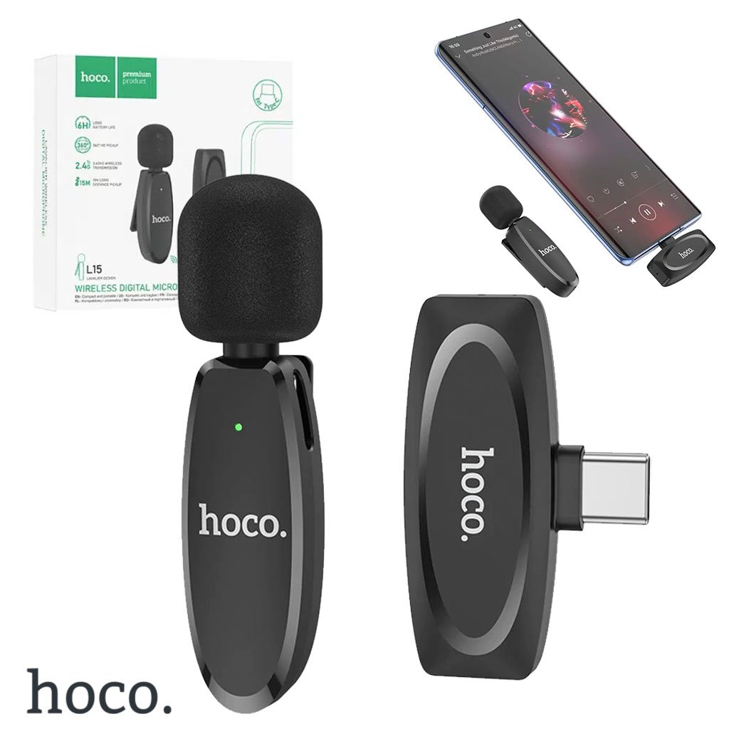 L15 Type-C Microphone numérique cravate sans fil- Hoco . Ce microphone est petit, léger et facile à utiliser, ce qui le rend parfait pour les vloggers, les YouTubers, les podcasteurs et toute autre personne souhaitant capturer un son clair et net.
