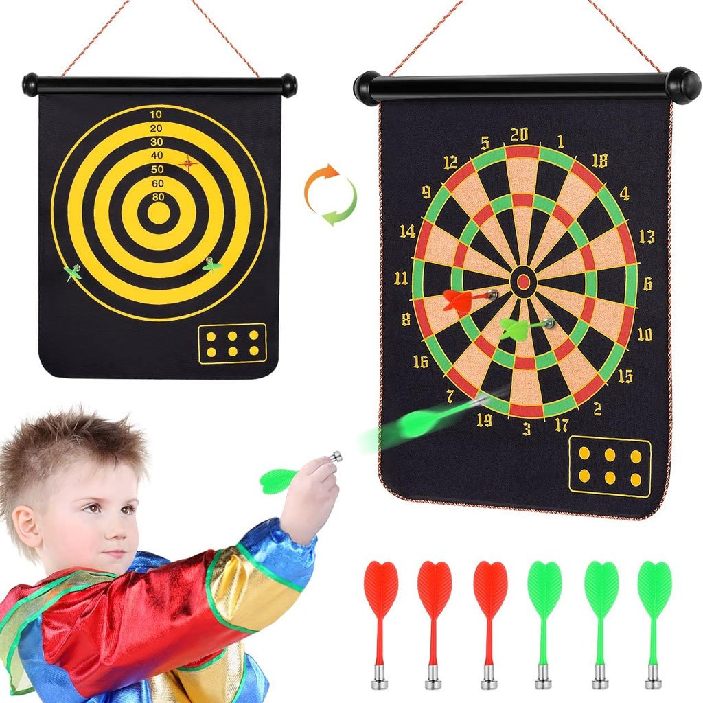 - ✔[Jeu de fléchettes magnétique double face] Les jeux de fléchettes magnétiques enroulables sont des jeux d'intérieur et d'extérieur très appréciés des enfants et des adultes. Un jeu de fléchettes de 15" équipé de 6 fléchettes, 3 vertes et 3 rouges. Plus facile à réaliser. côté est un jeu de fléchettes standard, et l'autre côté est un jeu cible qui offre plus de jeu et d'aventure. Plus de plaisir.