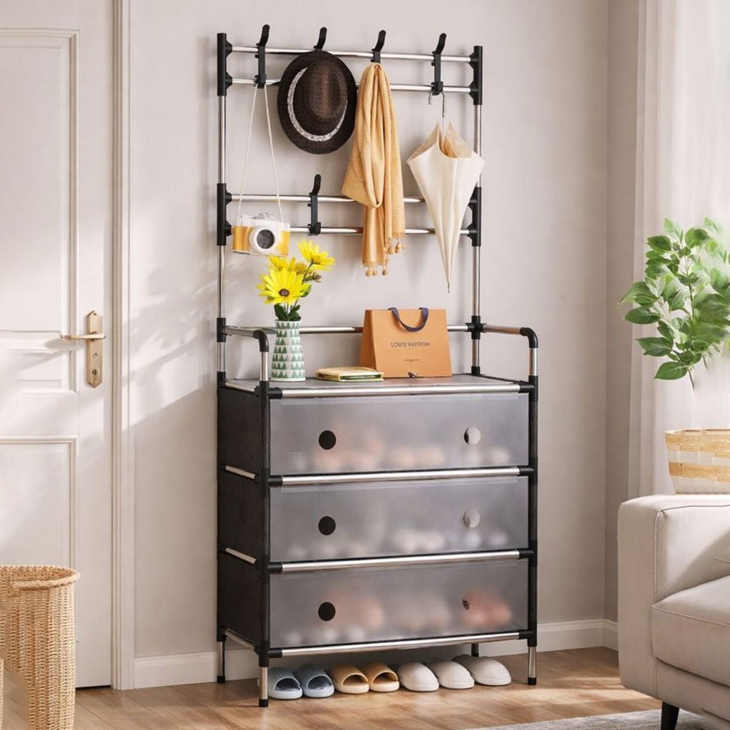 Porte-chaussures à 3 niveaux avec 8 crochets doubles pour l’entrée – علاقة ملابس ومنظم أحذية
