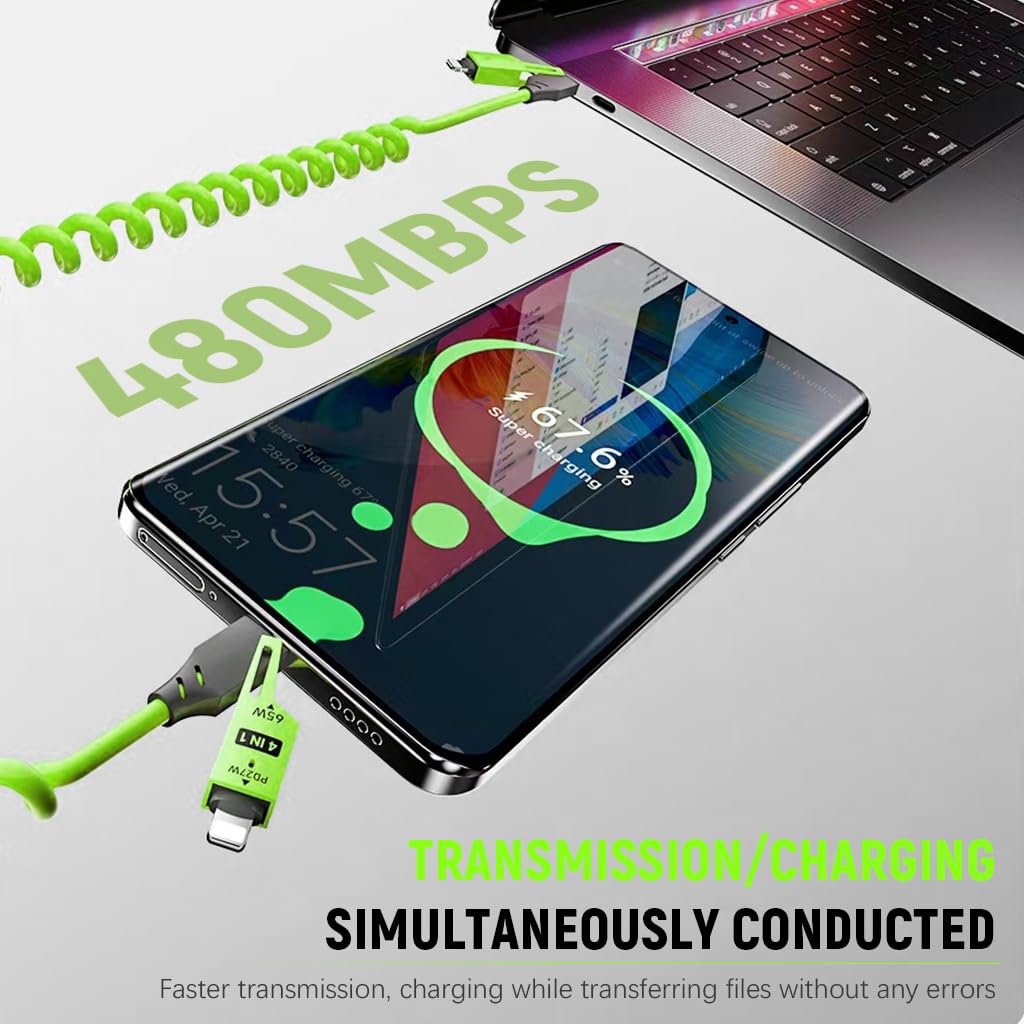 • CONCEPTION UNIQUE À RESSORT SPIRALE : Le design unique du câble Type-C 4 en 1 à ressort spiralé est non seulement esthétique, mais aussi incroyablement pratique. Le câble C vers C s’étire facilement en cas de besoin et se range facilement lorsqu’il n’est pas utilisé, ce qui permet de gagner de la place et d’éviter les enchevêtrements. Cette flexibilité garantit une adaptation optimale à vos besoins, offrant fonctionnalité et praticité dans divers environnements.