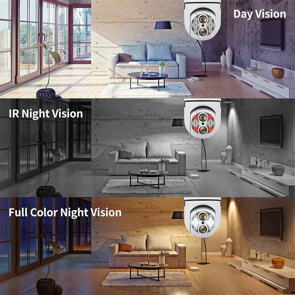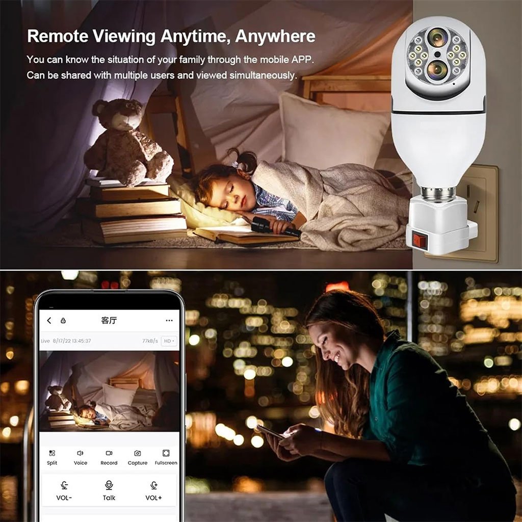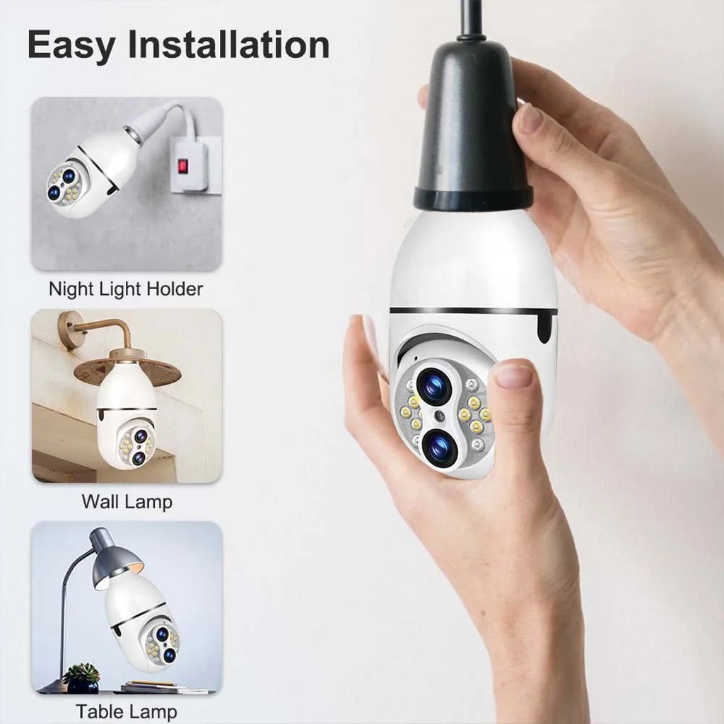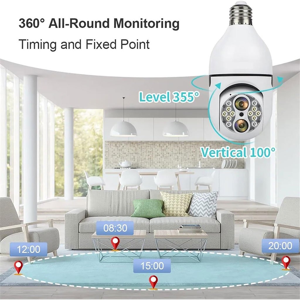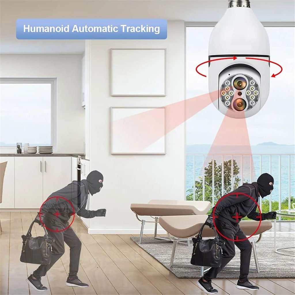 Caméra de Sécurité Ampoule à Double Objectif Suivi Automatique – كاميرة مراقبة بميزة التتبع الذاتي
