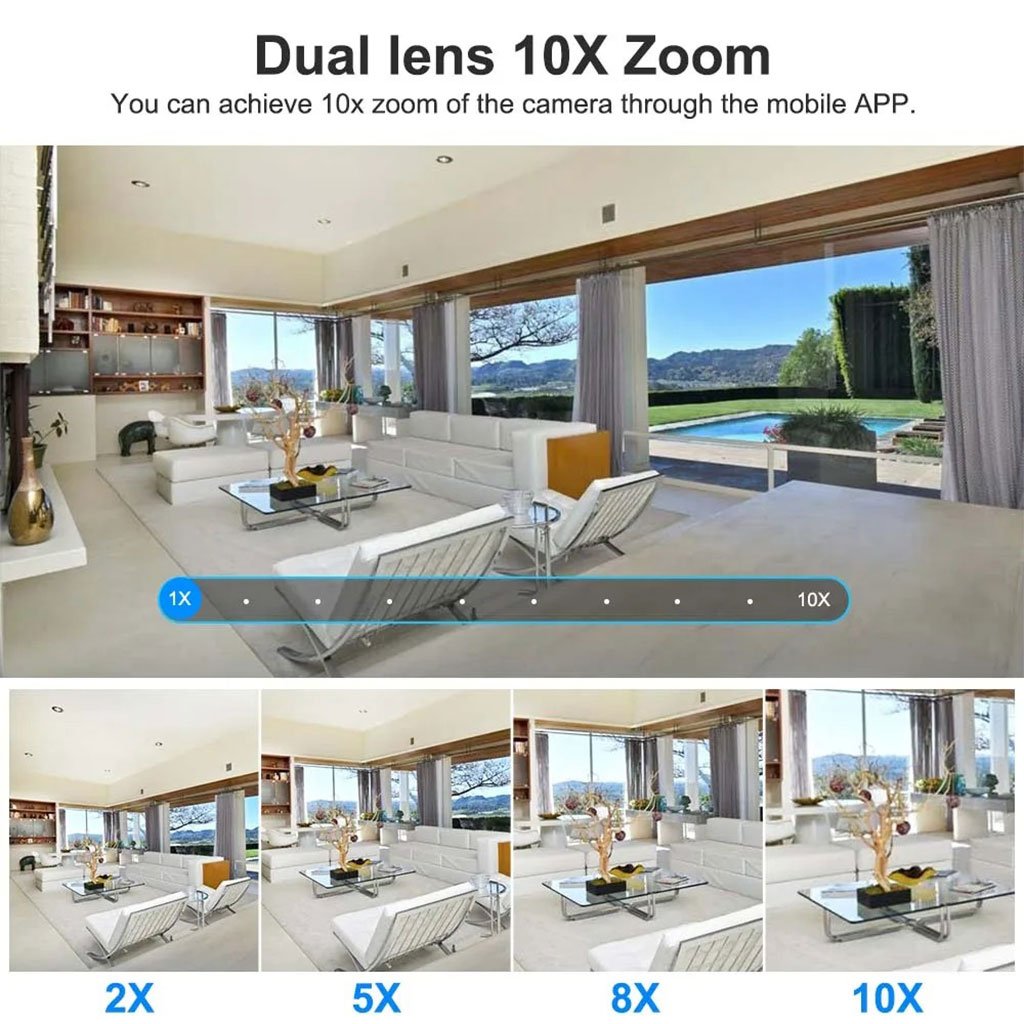 - Cette caméra de protection de sécurité peut voir clairement plus de détails de zoom avec une image UHD, vous offrant une meilleure expérience visuelle inégalée par d’autres produits sur le marché. Réalisez que vous voyez de plus grands détails sur des objets distants sans vous en approcher.