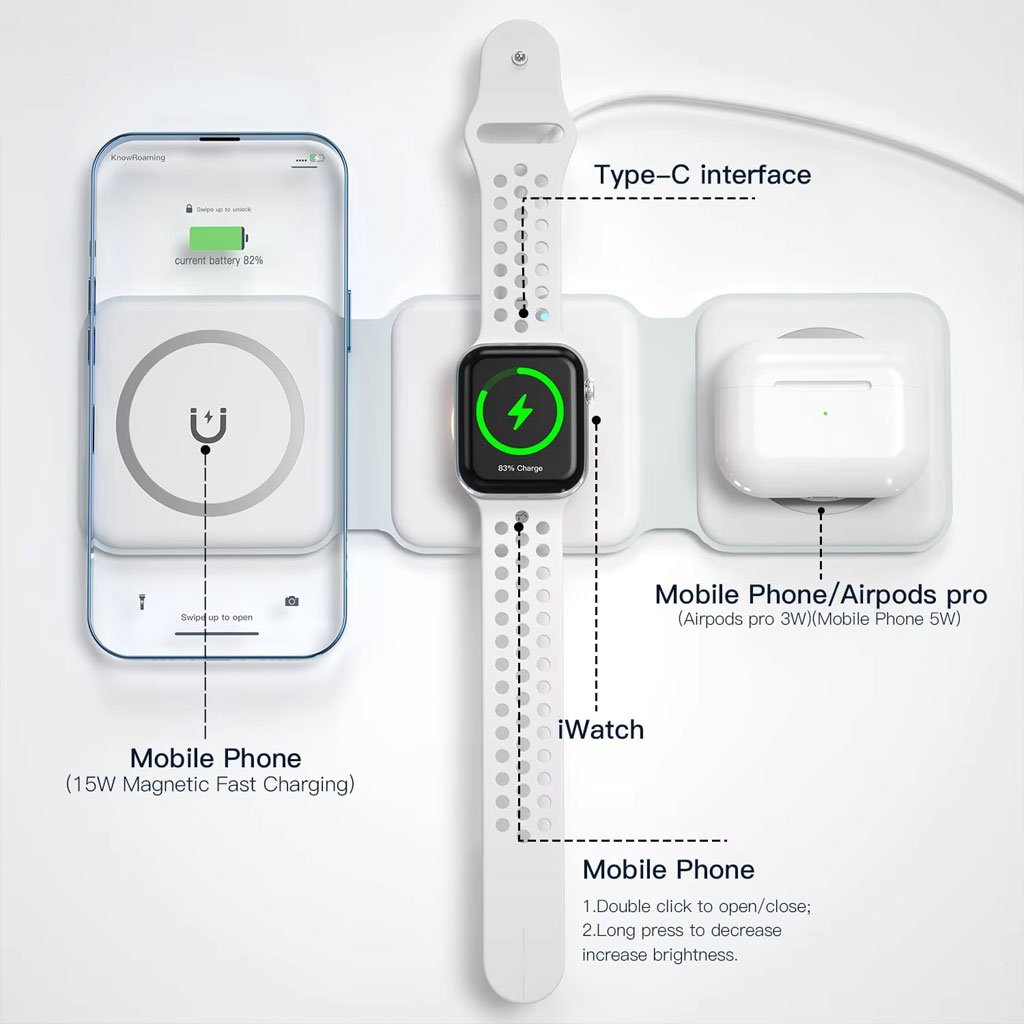 Chargeur magnétique sans Fil 65W 3 en 1 Chargement Rapide
