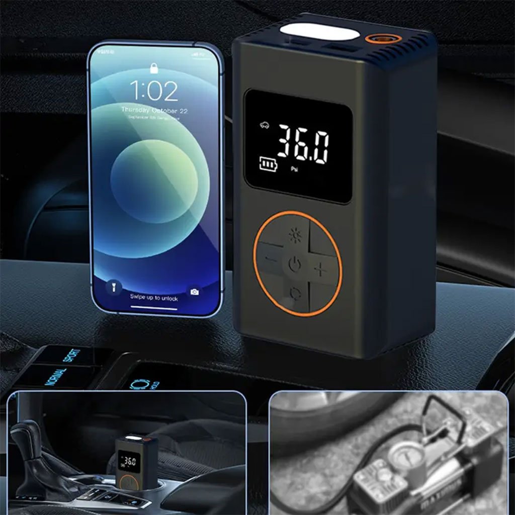 Compresseur d’air pour pneus de voiture avec manomètre numérique – جهاز ضغط الهواء