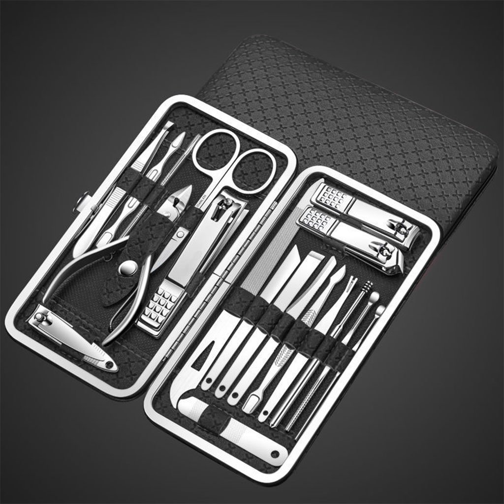 - 100% neuf et de qualité, le kit de manucure comprend les soins du visage, des mains et des pieds. L’ensemble complet de coupe-ongles est livré avec un étui en cuir, ce qui permet à chaque composant de s’user moins facilement.