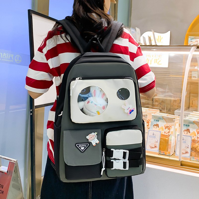 Ensemble de sacs d’école Kawai pour adolescents 5Pcs Guiyu V2 Noir et Gris– محفظة 5 قطع كاواي أسود ورمادي