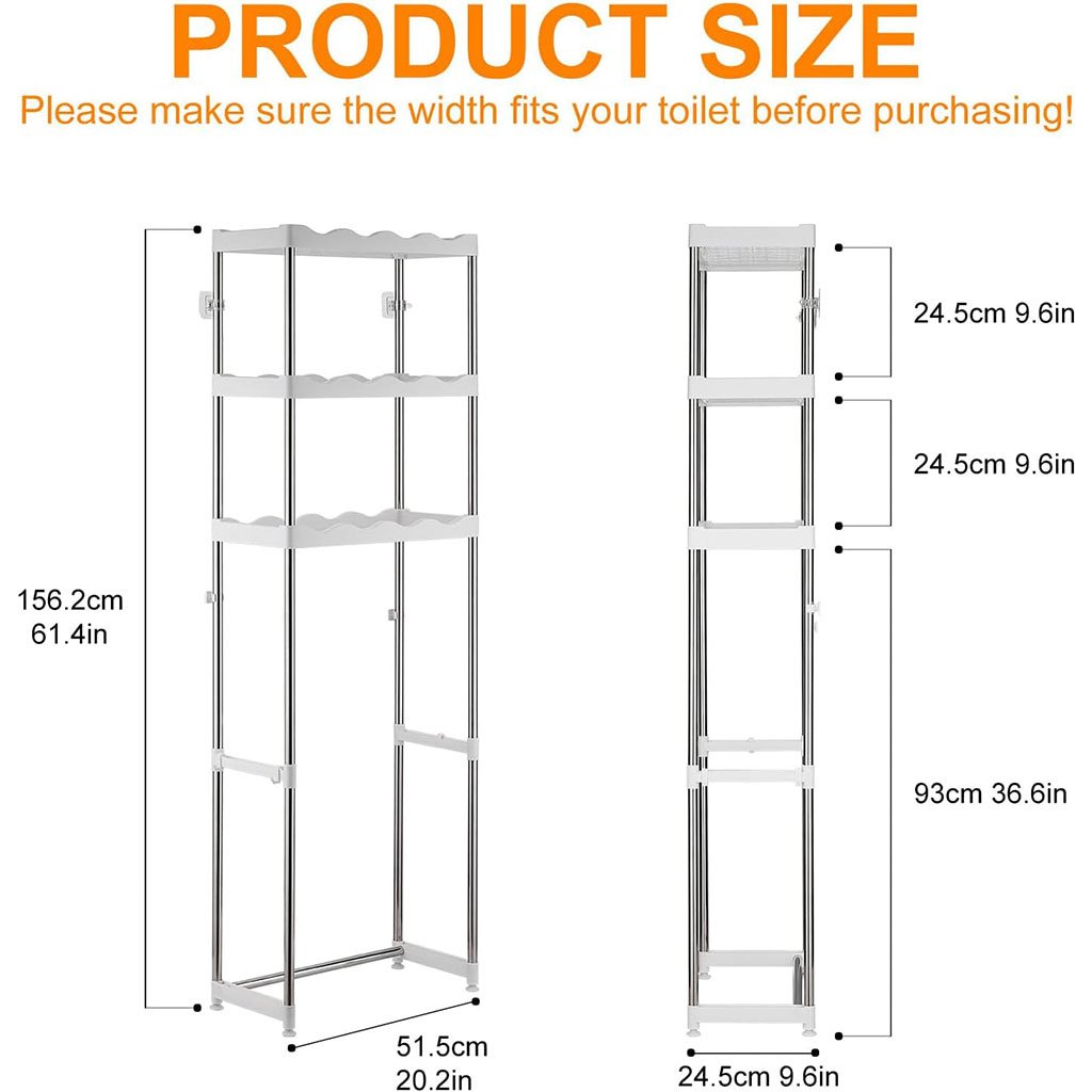 - Agrandissez l’espace – La taille de l’étagère des toilettes est de 50,5 x 24,5 x 169,5 cm (L x l x H), s’adapte à la plupart des toilettes standard, vous aide à tirer le meilleur parti de l’espace vide inutilisé au-dessus des toilettes et maintient la salle de bain en ordre.