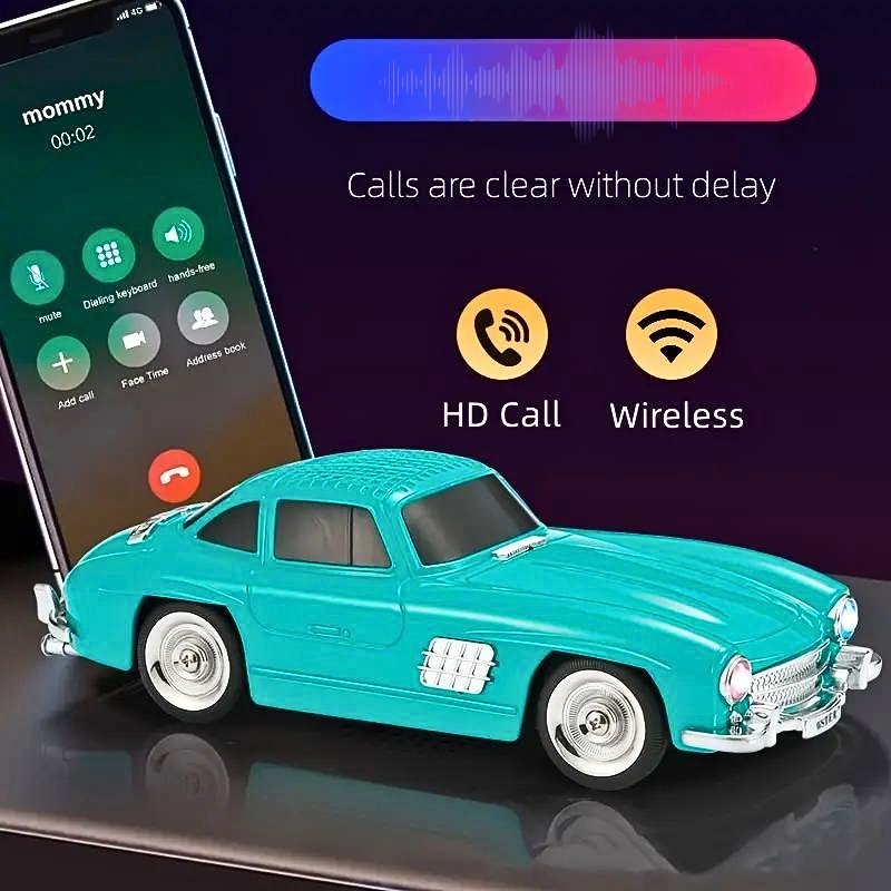 Haut-parleur audio Bluetooth sans fil En forme de Voiture Vintage , Carte mémoire , appels , AUX , Clé USB , FM RADIO