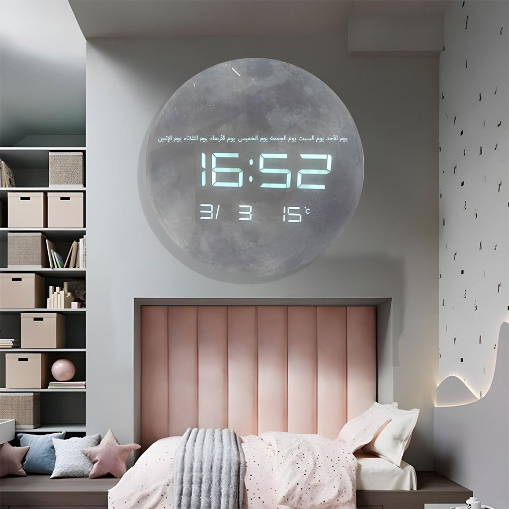 Horloge Murale Moon Numérique LED 13 Pouces – ساعة حائط رقمية