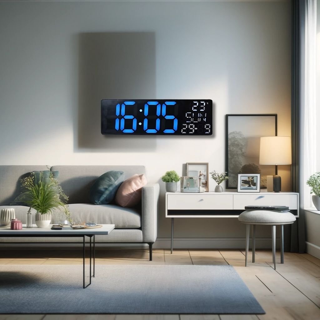 - Design Élégant : Cette horloge numérique arbore un affichage LED clair avec un éclairage inférieur bleu, ajoutant une touche moderne à tout espace.