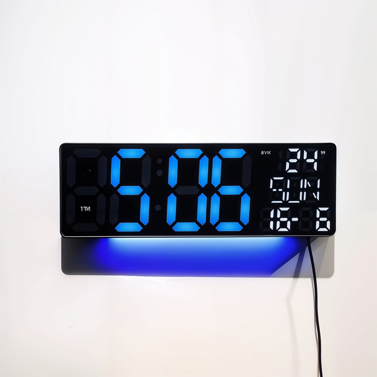Horloge Numérique Murale et Table LED à Éclairage Bleu Inférieur – ساعة رقمية للحائط و المكتب بإضاءة سفلية زرقاء
