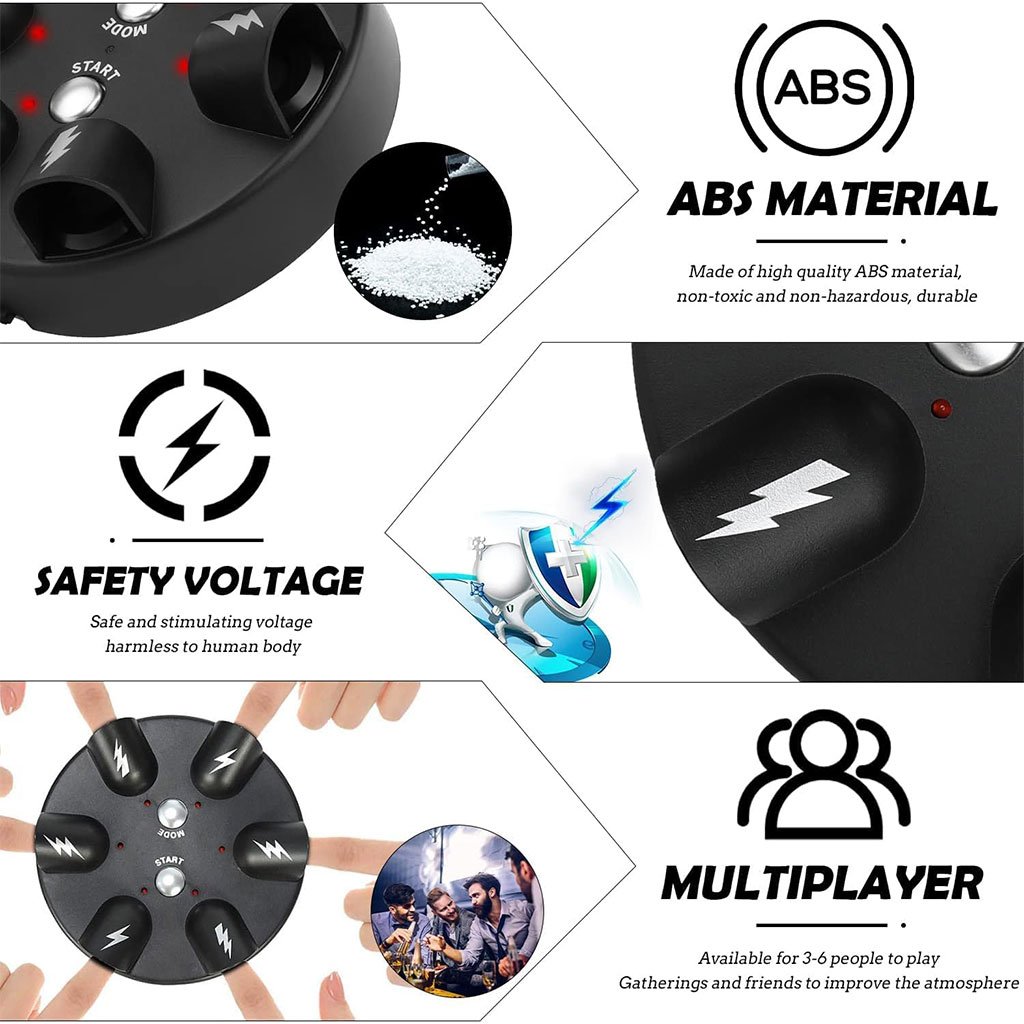 - Jeu pour 2 à 6 joueurs : Roulette Shot Reloaded Shock est un jeu amusant qui se joue entre amis, notamment pour les soirées alcoolisées. Le détecteur de mensonges à décharge électrique Gawertoy, version améliorée, peut accueillir de 2 à 6 joueurs. Grâce à la lumière rouge clignotante et au bruit de fond rapide, les joueurs détermineront qui sera la prochaine victime dans une ambiance tendue.