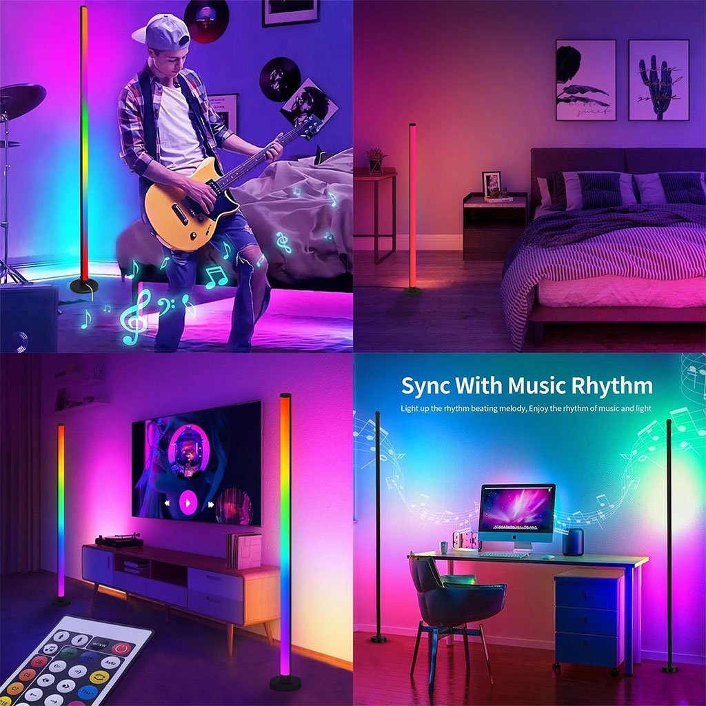 - 【Fonction de synchronisation de la musique】 : Plongez dans le monde enchanteur de notre lampadaire d’angle à commande musicale. Cette tour d’éclairage vivante, équipée de la connectivité Bluetooth, vous permet de synchroniser votre musique préférée de manière transparente. Les teintes colorées et les effets lumineux inspirés des jeux, combinés aux teintes réglables et aux options de gradation, en font le choix parfait pour créer une atmosphère immersive et dynamique.