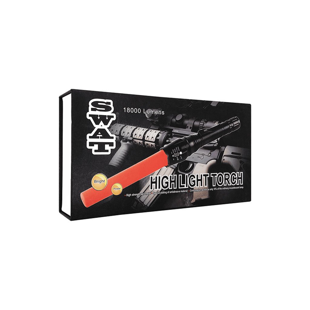 La lampe de poche tactique de 18 000 lumens avec lumière LED et deux piles rechargeables, Swat, est parfaite pour éclairer les espaces sombres et/ou avec moins de visibilité.