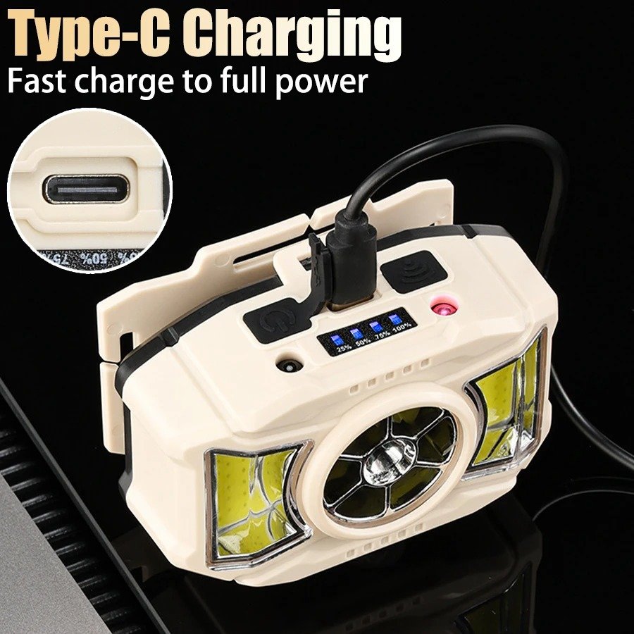 Lampe frontale LED COB à induction Rechargeable par USB 5 Modes – مصباح رأس قابل للشحن