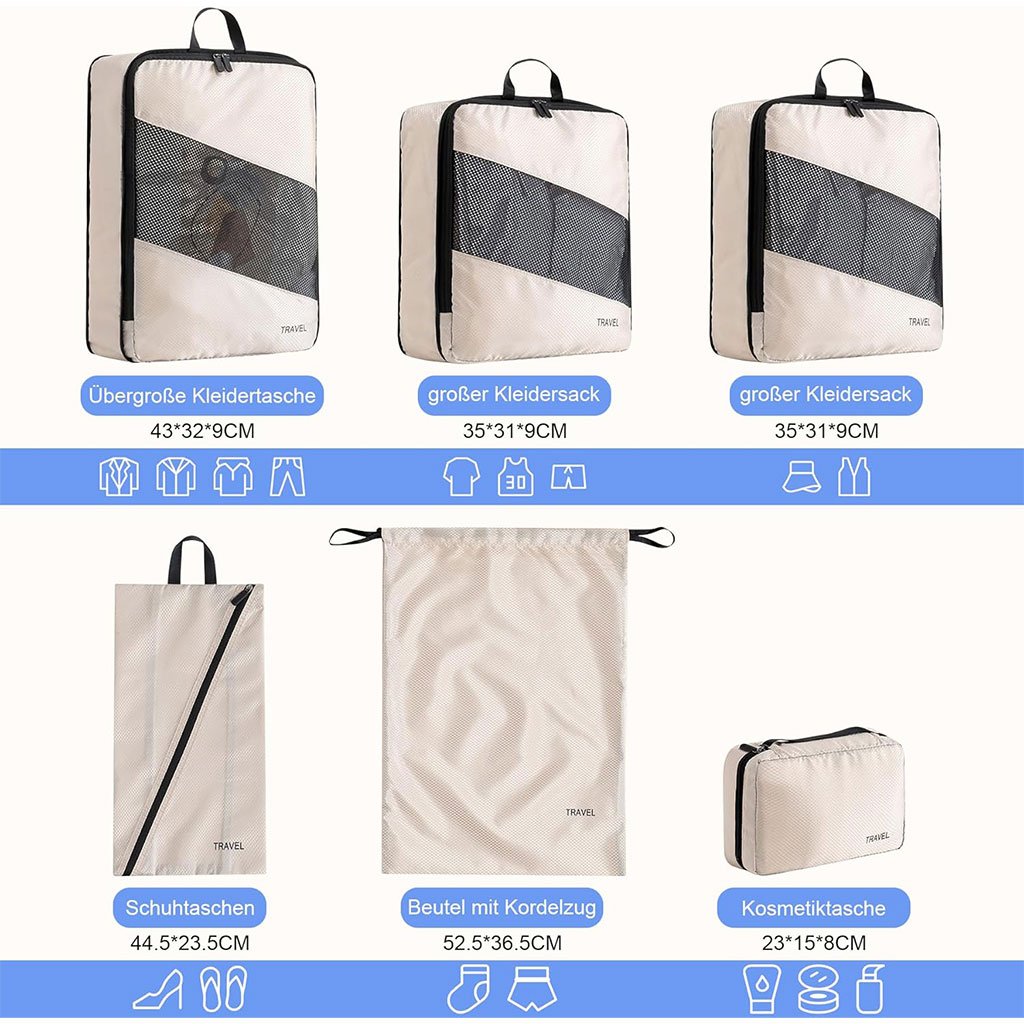 Lot de 6 sacs de voyage et compression extensibles pour valises