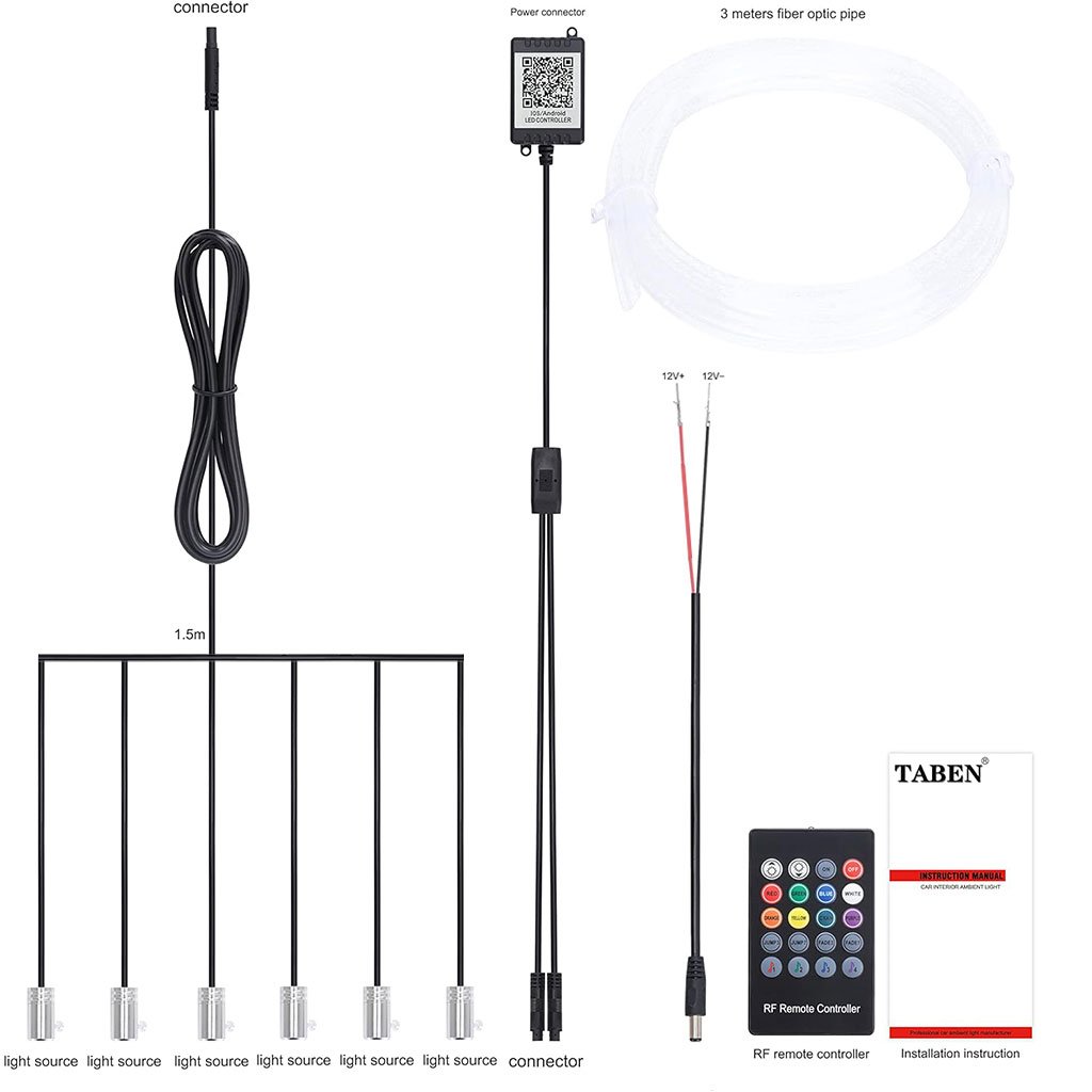- ★ 【Télécommande RVB + Contrôle APP 64 couleurs Fibre optique Intérieur de la voiture Lumière ambiante】 La connexion Bluetooth vous permet de jouer avec 16 millions de couleurs, de définir le mode de plusieurs scènes via l’application “Lotus Lantern”. D’autres fonctions comme le clignotement, le réglage de la minuterie, la synchronisation de la musique sont prêtes à être explorées. Allumez la lumière en appuyant sur l’allume-cigare, éteignez l’interrupteur lorsque la lumière n’est pas utilisée.