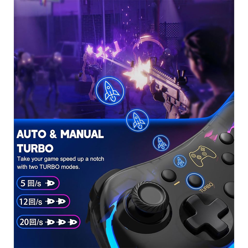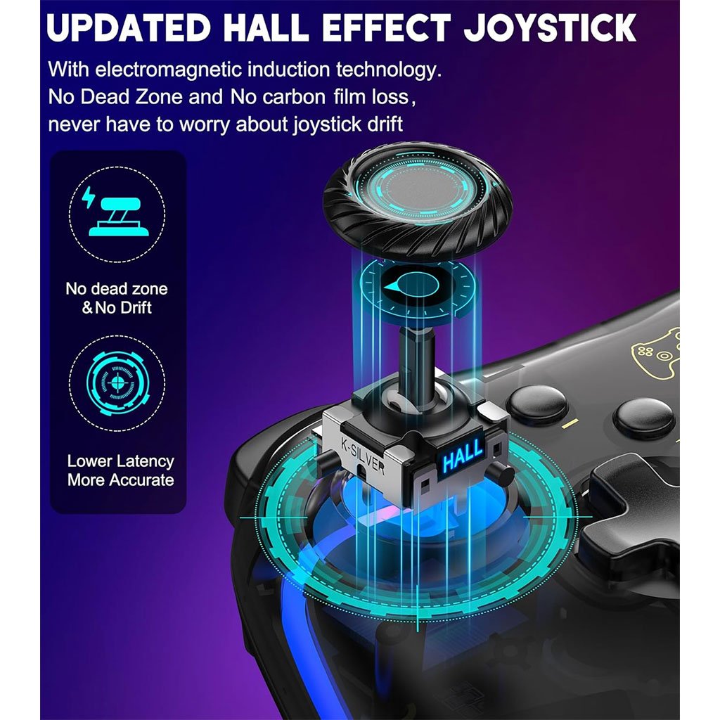 حرية حركة كاملة: اتصل لاسلكيًا بجهاز Nintendo Switch أو الكمبيوتر الشخصي أو جهاز Android الخاص بك، واستمتع باللعب براحة تامة من أريكتك دون أي تأخير ملحوظ.توافق واسع: يمكنك التبديل بسهولة بين الأجهزة. فهو متوافق مع Switch، وأجهزة الكمبيوتر التي تعمل بنظام Windows (X-Input/D-Input)، وPS3، وأجهزة Android الذكية.بطارية عالية الأداء: مزود ببطارية مدمجة قابلة لإعادة الشحن، توفر ساعات من اللعب المتواصل. ما عليك سوى إعادة شحنها عبر كابل USB-C أثناء اللعب.انغماس حسي: تجعلك محركات الاهتزاز المزدوجة المدمجة تشعر بكل حركة وكأنك في قلب الحدث.دقة متناهية: تضمن عصي التحكم التناظرية ثلاثية الأبعاد Polyshine حركة سلسة للغاية، وقد تم اختبارها لأكثر من 500,000 دورة استخدام.وظيفة Turbo قابلة للبرمجة: اضبط أزرارك لإطلاق نار سريع تلقائي، مثالية لألعاب الأركيد وألعاب القتال.