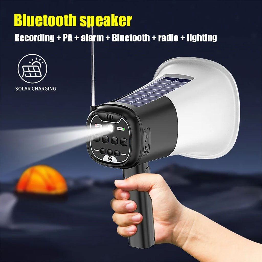 Mégaphone solaire portable pour Enregistrement en Extérieur avec Bluetooth V5.3 – مكبر صوت ومسجل بلوتوث