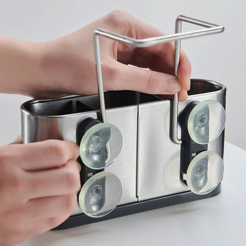 Organiseur d’évier de cuisine porte-éponge en acier inoxydable – منظم أغراض حوض الغسيل