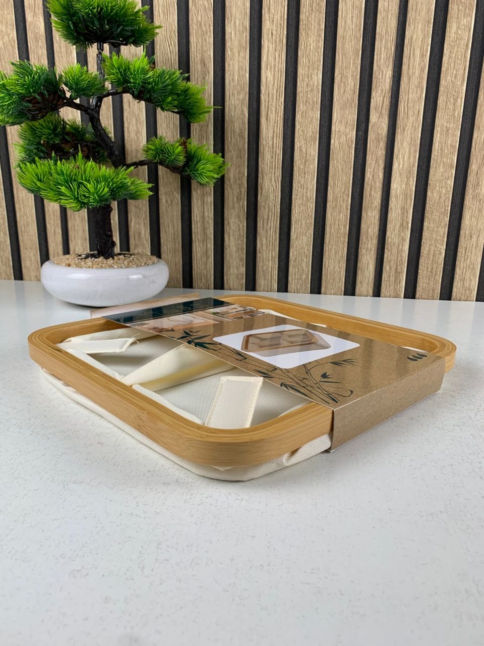 - 🧵 المواد: قماش لباد + خشب الخيزران (البامبو)