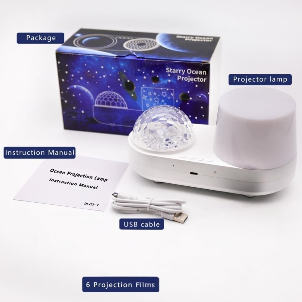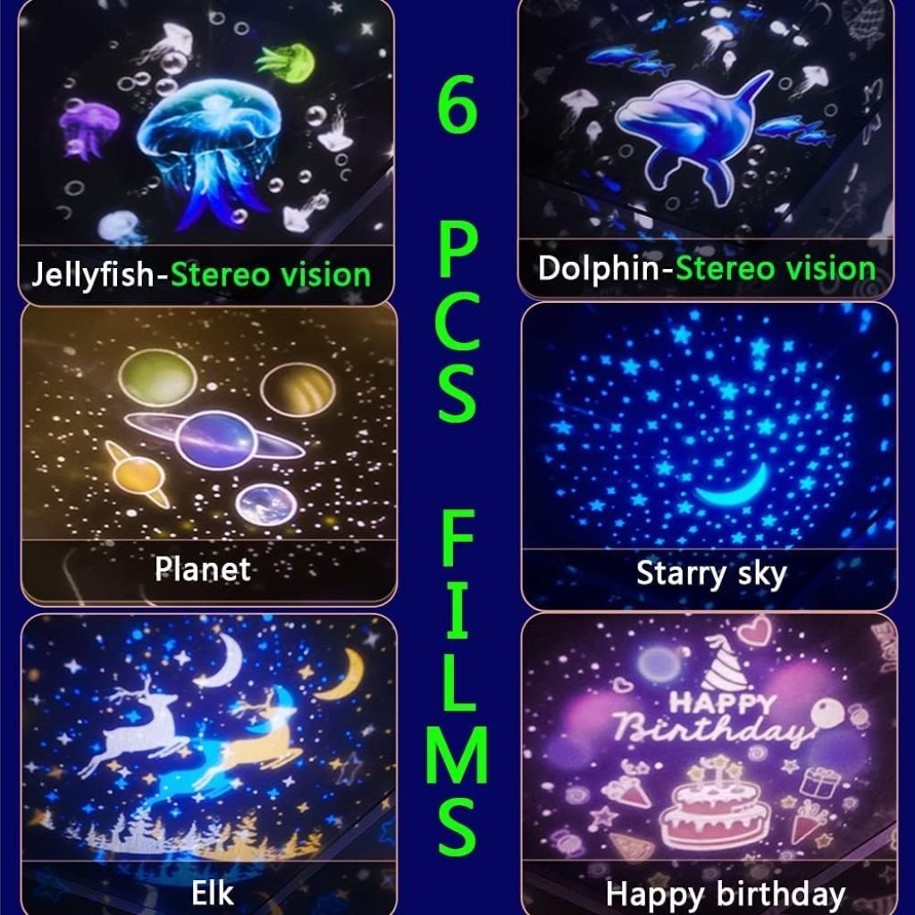 - Variété de Projections : Équipé de 6 films interchangeables et offrant 10 couleurs de vagues océaniques, ce projecteur crée une atmosphère immersive et apaisante pour les enfants.