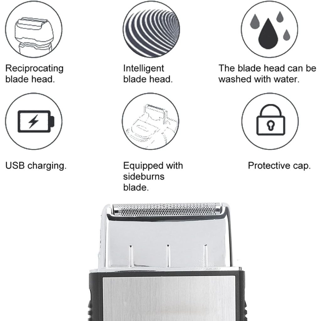 - Design Compact et Léger – تصميم مدمج وخفيف الوزن : Ce rasoir ultra-fin est idéal pour les hommes en déplacement, offrant une portabilité optimale pour une utilisation à domicile, en voyage ou en camping.