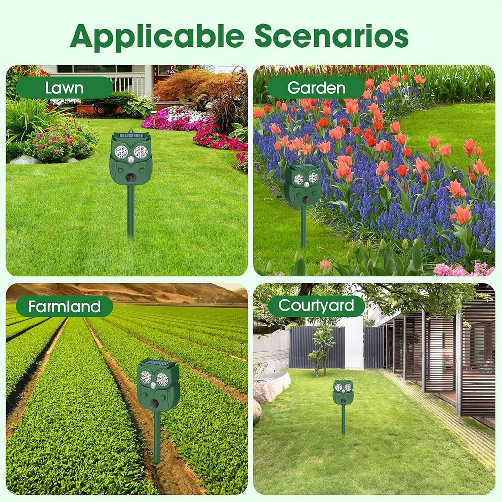 - 【Répulsif efficace contre les animaux】- Avez-vous des problèmes avec des animaux indésirables dans votre région, jardin, ferme, etc. ? Détruisent-ils votre jardin ou mangent-ils les fruits ? Vous apportent-ils de nombreux virus ? Commençons par utiliser le répulsif contre les animaux pour résoudre vos problèmes ! Cet appareil efficace vous aide à vous débarrasser des visiteurs animaux indésirables. Il contient un système de détection de mouvement qui détecte les mouvements et émet un son ultrasonique puissant et une lumière LED clignotante.