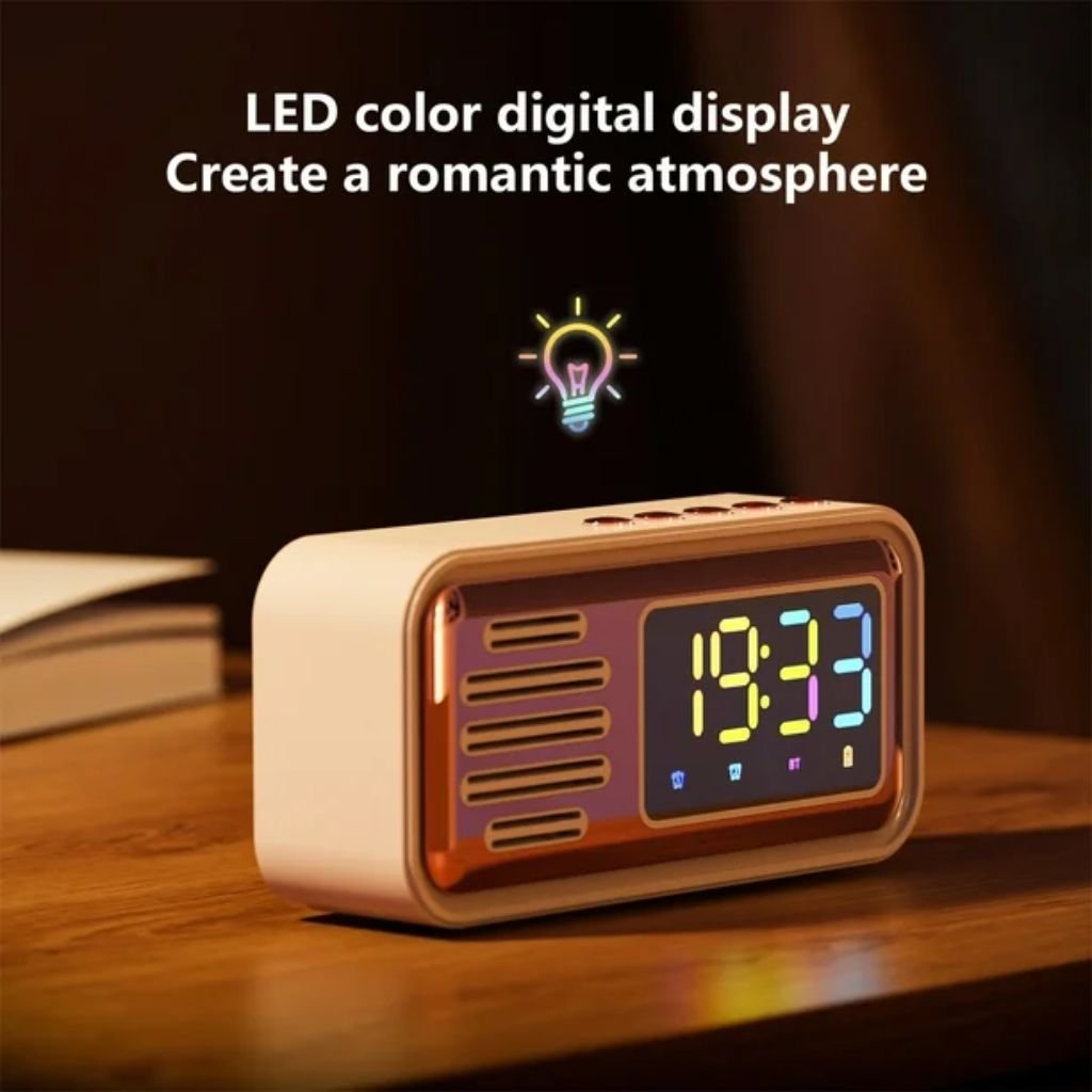Réveil Bluetooth Rétro avec Haut-Parleur et Fonction IPX5 – ساعة منبه بلوتوث مع مكبر صوت