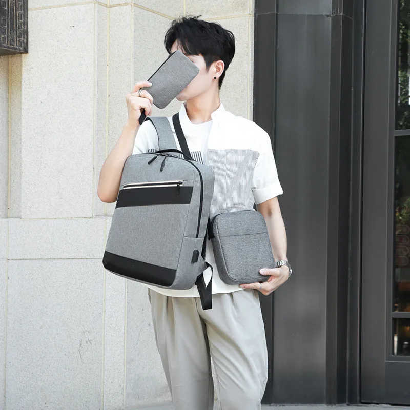 Sac à dos homme avec sac bandoulière et trousse 3en1 gris 2776-3 – محفظة ظهر رجالية 3 قطع رمادي