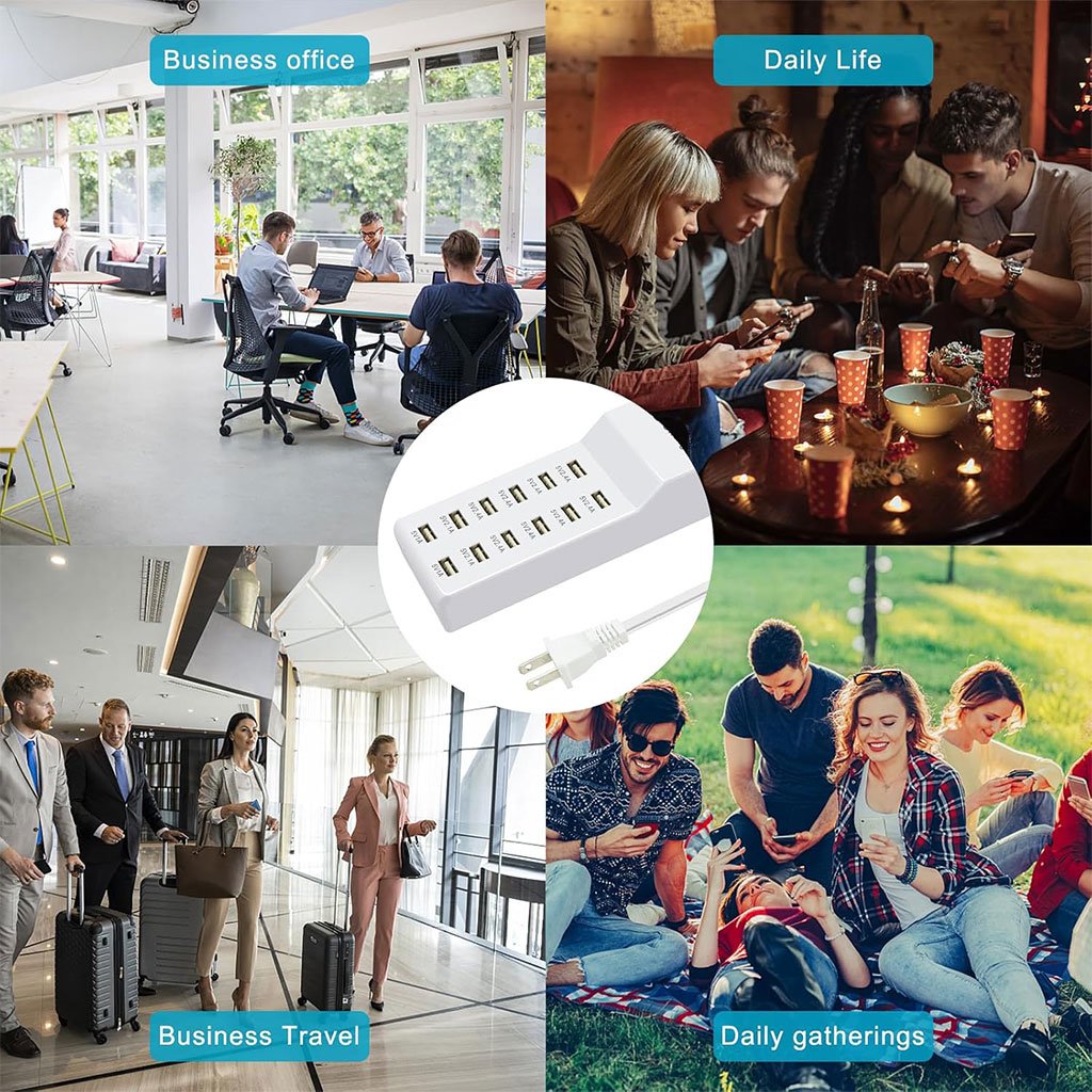 - Concentrateur de charge USB : la mini station de charge USB vous permet d’économiser un espace précieux sur votre bureau et peut être utilisée pour jusqu’à 12 appareils au même endroit à la fois pour une organisation accrue.