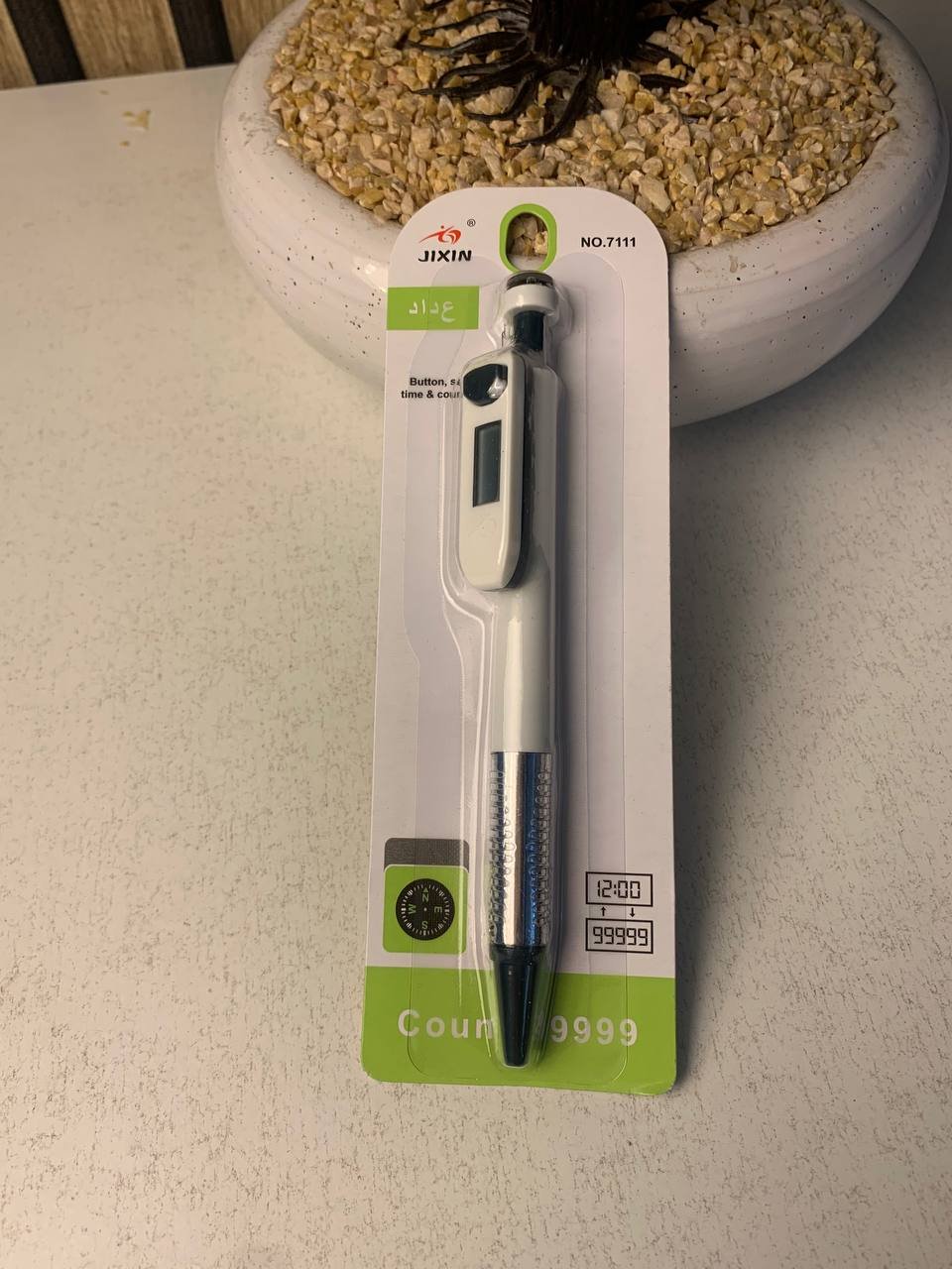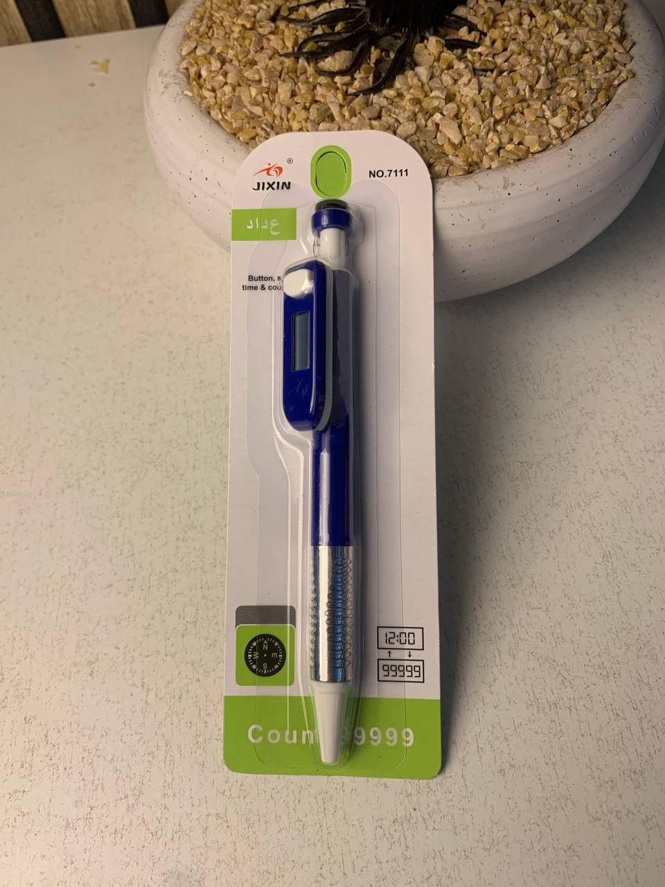 1. عداد تسبيح إلكتروني: مزود بشاشة LCD رقمية واضحة وزر ضغط مريح لتسجيل عدد التسبيحات بدقة، مع زر جانبي لإعادة ضبط العداد (تصفير) بسهولة.2. ساعة رقمية مدمجة: لا داعي للنظر إلى هاتفك أو ساعة يدك، فالقلم يحتوي على شاشة صغيرة تعرض الوقت، لتبقى على دراية بالوقت أثناء انشغالك بالذكر.3. بوصلة مدمجة: يحتوي رأس القلم على بوصلة صغيرة تساعدك في تحديد الاتجاهات الأساسية، وهي ميزة مفيدة جداً أثناء السفر والتنقل.4. تصميم مريح وجذاب: هيكل القلم مصمم لراحة اليد أثناء الاستخدام الطويل، مع مقبض فضي أنيق ومانع للانزلاق.5. ألوان متنوعة: يأتي القلم بتشكيلة من الألوان الجذابة (مثل: الوردي، الأخضر، الأصفر، البني/الخشبي) التي تناسب كافة الأذواق.تفاصيل المنتج