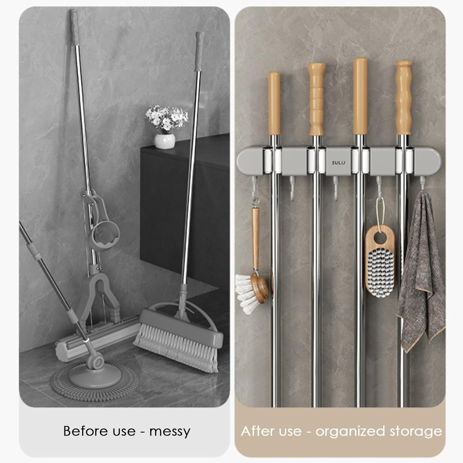 Support mural pour balai avec Crochets pour serpillière - حامل مكنسات التنظيف