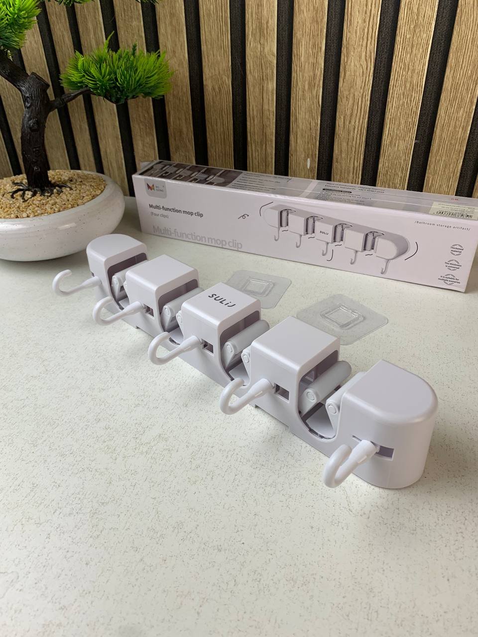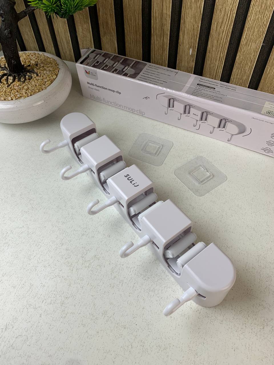 هيكل من البلاستيك الصلب (ABS): مادة قوية جداً ومقاومة للصدمات والرطوبة، مما يضمن عدم تآكله أو تغير لونه بمرور الوقت، خاصة في الأماكن الرطبة كالحمامات.مقابض سيليكون ذكية: نظام المشابك (Clips) مزود بمطاط مرن يمسك مقابض الأدوات بإحكام شديد بفضل الجاذبية؛ كلما كان الغرض أثقل، زادت قوة الإمساك به.سعة تخزين 9 في 1: مزود بـ 4 مقابض آلية للمكنسات و 5 خطافات عملية قابلة للطي لتعليق الفوط، المفاتيح، أو أدوات المطبخ الصغيرة.تصميم موفر للمساحة: بفضل لونه الهادئ وتصميمه المدمج، يختفي خلف الأبواب أو في زوايا المطابخ ليحول الفوضى إلى ترتيب أنيق في ثوانٍ.مقاومة تامة للمياه: على عكس المعادن العادية، هذا المنظم البلاستيكي لا يصدأ أبداً، مما يجعله الخيار الأول لتنظيم أدوات الحمام أو المرآب الرطب.تركيب سهل وسريع: يأتي مع خيارات تثبيت قوية تضمن استقراره على الجدران الملساء لفترات طويلة.المواصفات التقنية:المادة: بلاستيك ABS صلب عالي الجودة + سيليكون.التكوين: 4 مقابض للتعليق + 5 خطافات عملية.الاستخدام: داخلي (مطبخ، حمام، مستودع).الميزة: خفيف الوزن، مضاد للصدأ، ونظام إمساك أوتوماتيكي.