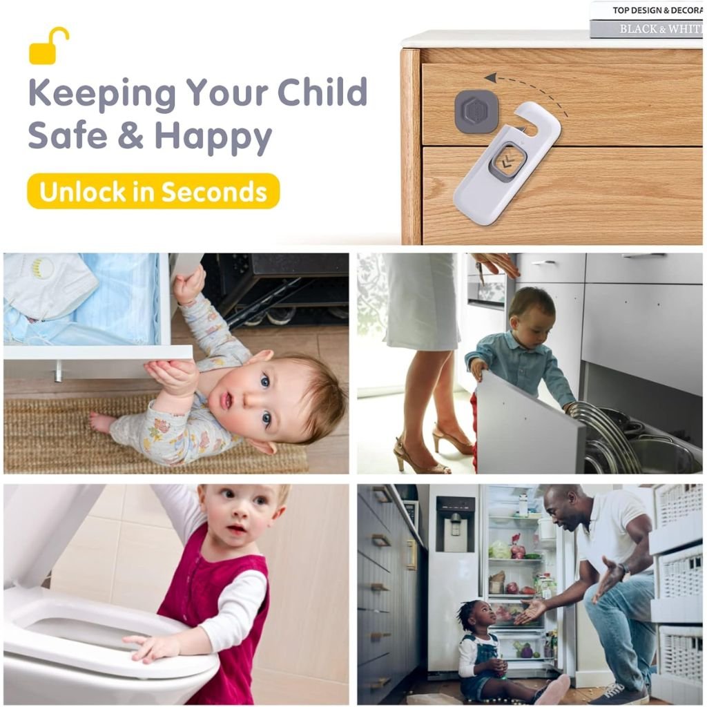 • Sécurité Enfant – أمان للأطفال : Ces verrous de sécurité empêchent les enfants d’accéder aux placards, tiroirs, réfrigérateurs et lave-vaisselles, réduisant ainsi les risques d’accidents domestiques.