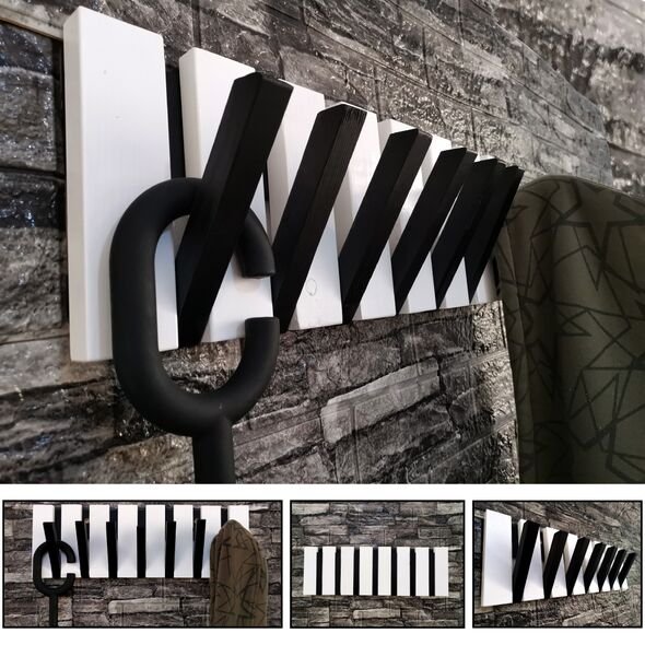 Porte Manteau Piano en Bois 7crochet Design Moderne BLANC-MARRON